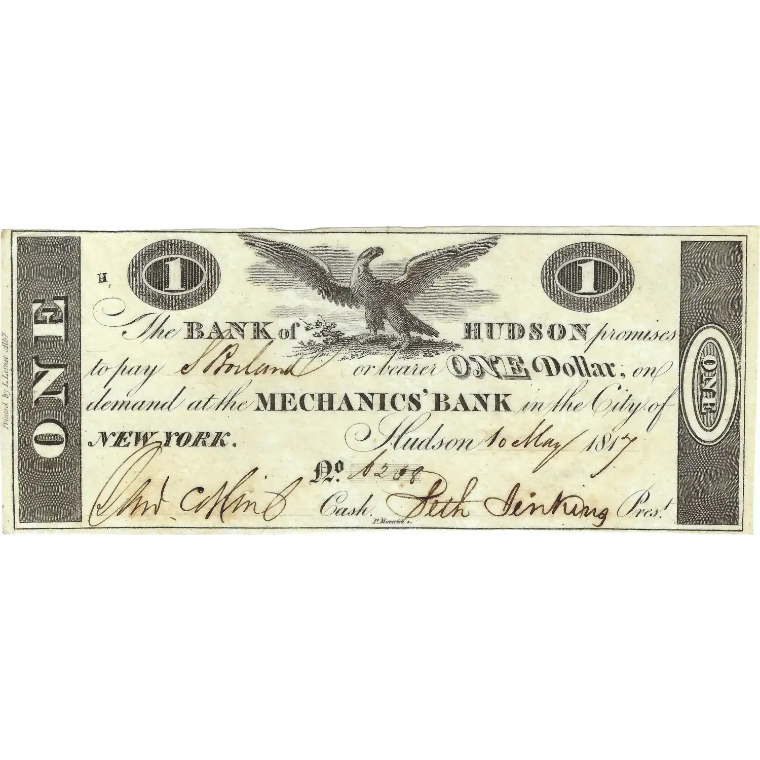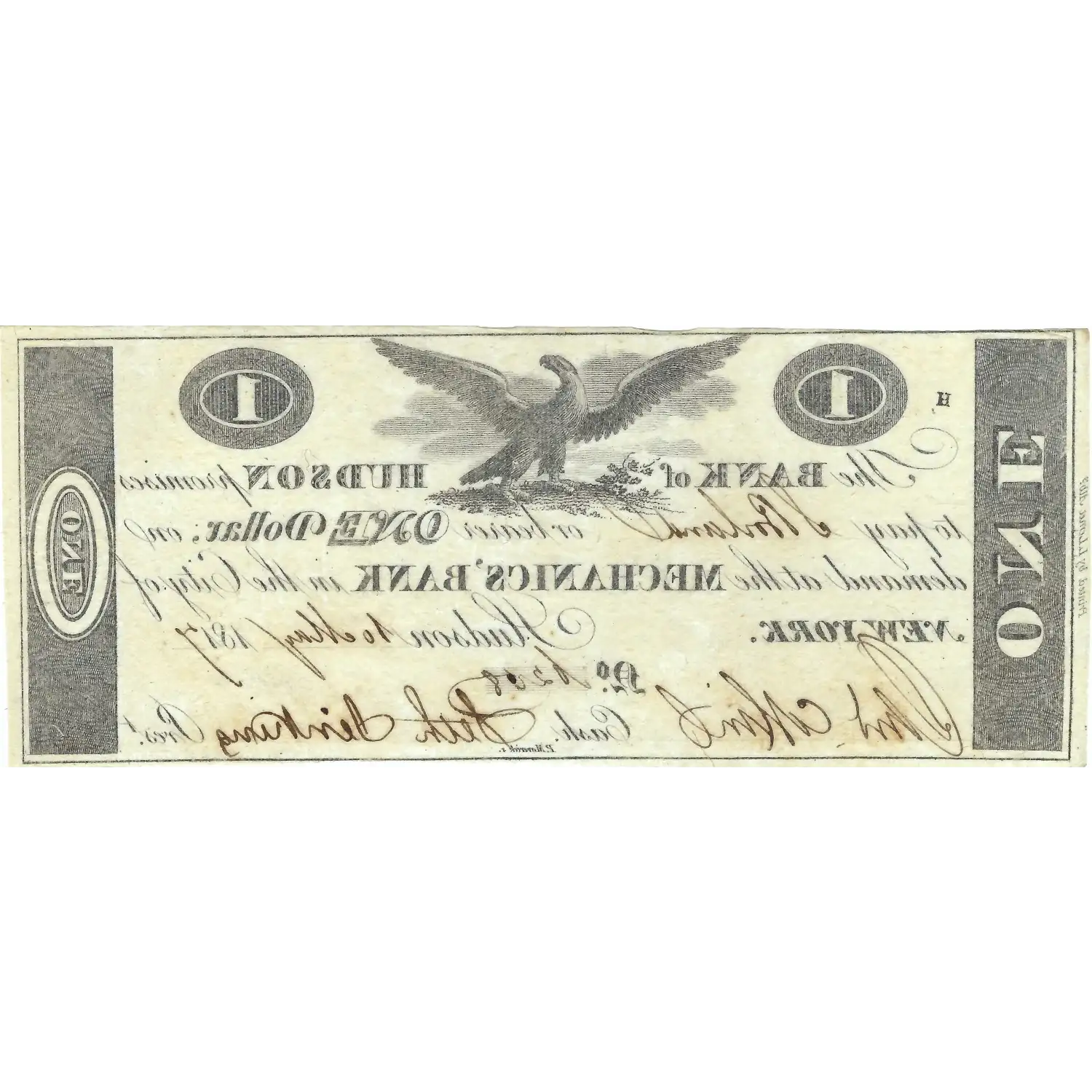 U.S. Obsolete Currency, $1 Bank of Hudson, New York, Mechanics' Bank