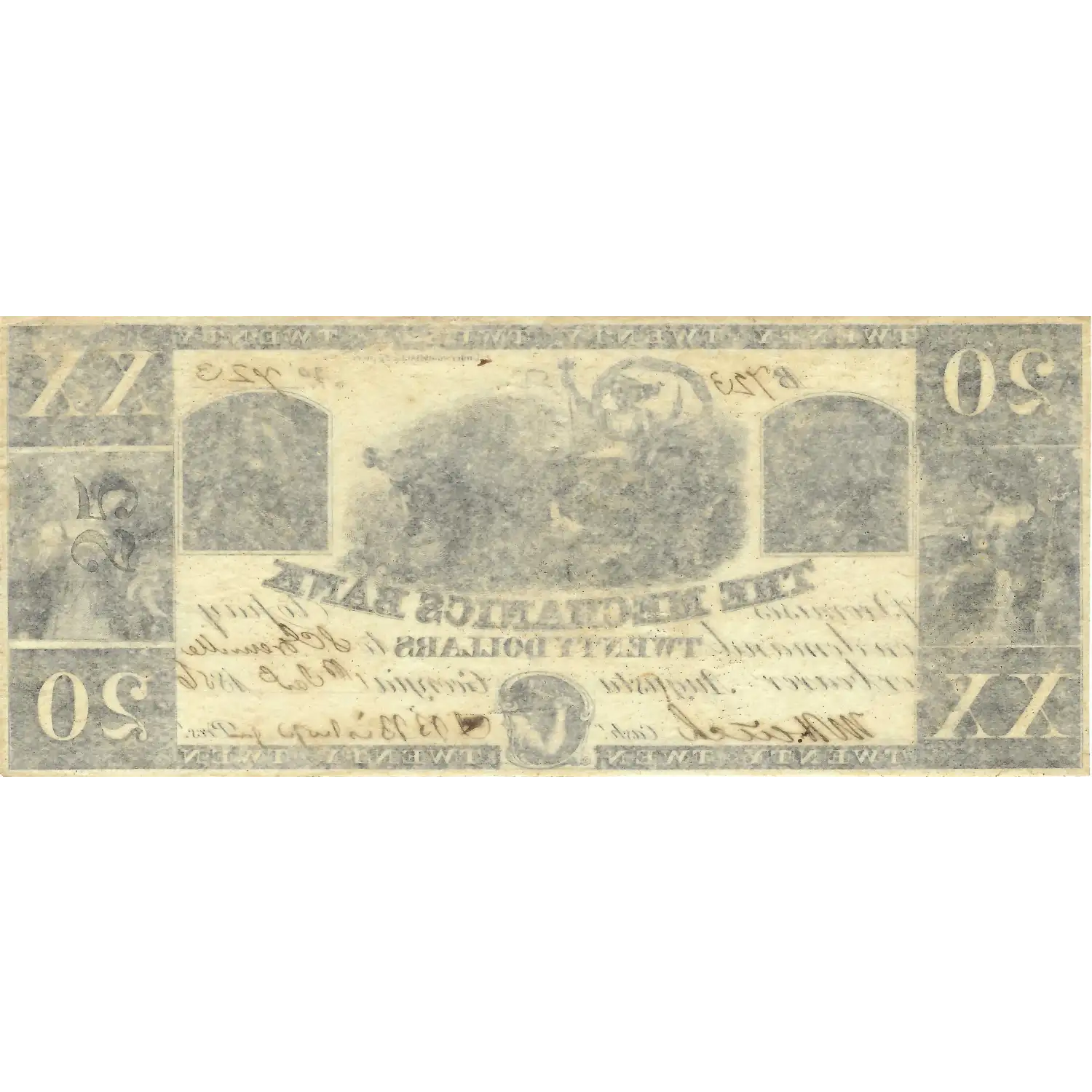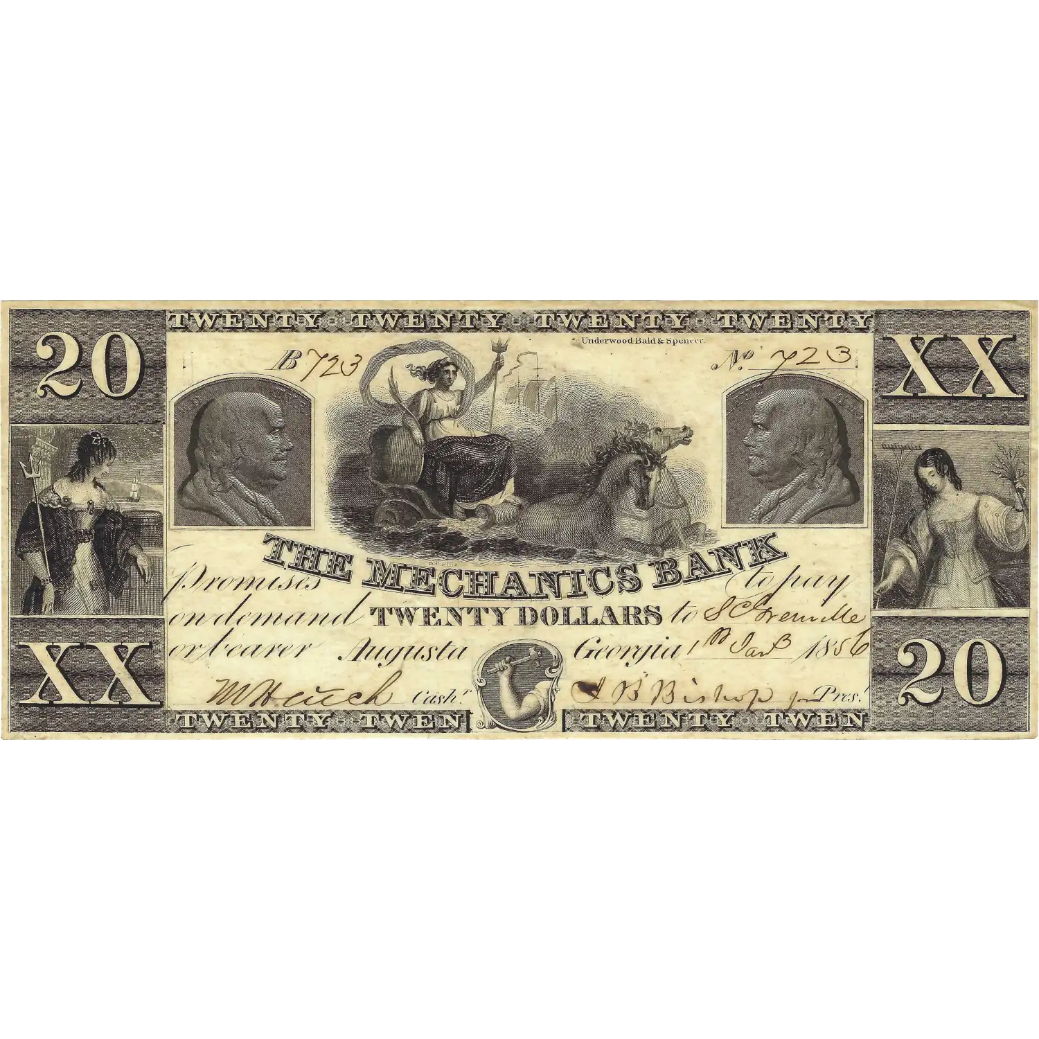 U.S. Obsolete Currency, $20 The Mechanics Bank of Augusta, Georgia, Circulated